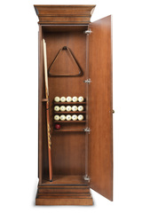 Киевница «Гроссмейстер» имеет форму пенала. Модель предназначена для размещения четырех киев, конструкцией предусмотрены полочки для хранения шаров и подвес для треугольника. Киевница станет удобным и многофункциональным украшением интерьера респектабельной бильярдной комнаты.