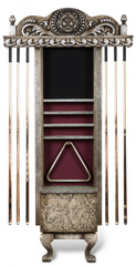 Модель напольная, предназначена для 6 киев, позволяет разместить треугольник, мелки, а также бильярдные шары. Материал клен. Есть возможность выбрать цвет из палитры Фабрики «Старт»