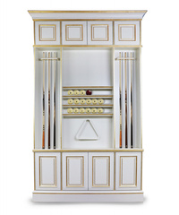Модель выполнена из массива граба. Авторская выкраска Blanco Plumon. Конструкция напольная, предназначена для 6 киев, также позволяет разместить треугольник, мелки и бильярдные шары и другие аксессуары для бильярда.