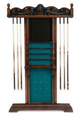 КМодель напольная, предназначена для 6 киев, позволяет разместить треугольник, мелки, а также бильярдные шары. Материал массив ясеня / клен. Есть возможность выбрать цвет из палитры Фабрики «Старт»