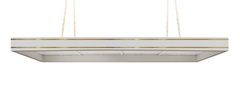 Светильник светодиодный 4-х секционный #40;LED#41; для бильярдных столов 10,11,12 футов. NEO - это современное освещение, включающее сверхъяркие светодиоды, дающие ровный свет и световой поток без искажений. Светодиодные панели NEO отличаются прекрасными потребительскими характеристиками, обладают энергосберегающими свойствами. Светильник NEO идеален для установки в помещении с низкими потолками, их конструкция предусматривает подъем на нужный уровень и не требуют повышенных стандартов высоты помещения. Условные схематические обозначения: L — длина лампы / 2430 мм d — ширина лампы / 640 мм D — толщина лампы / 120 мм Н — мах высота крепления / 1400 мм C — расстояние между осями / 1300 мм